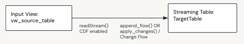 Input view created over the streaming source table. This view can optionally read from CDF if the source table is CDF enabled. |